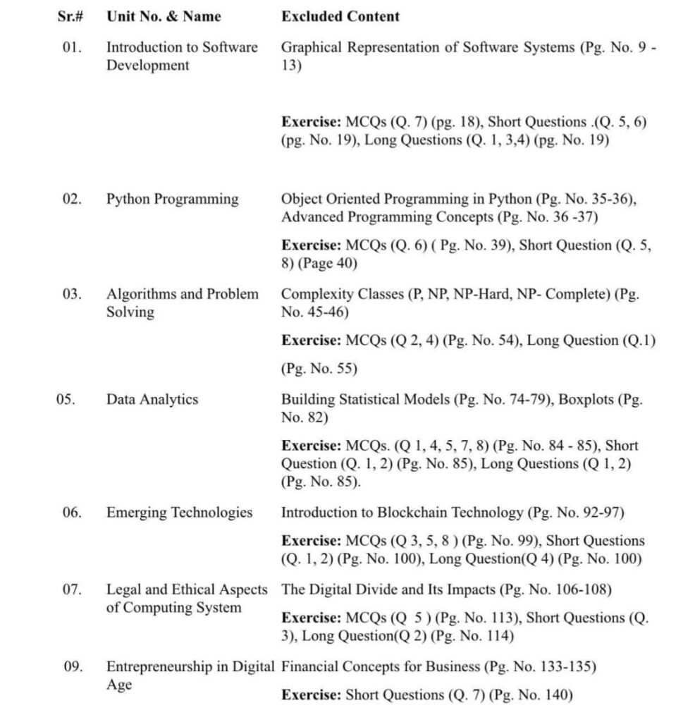 Sr.# Unit No. & Name Excluded Content (Topics & Pages) Excluded Exercise Questions